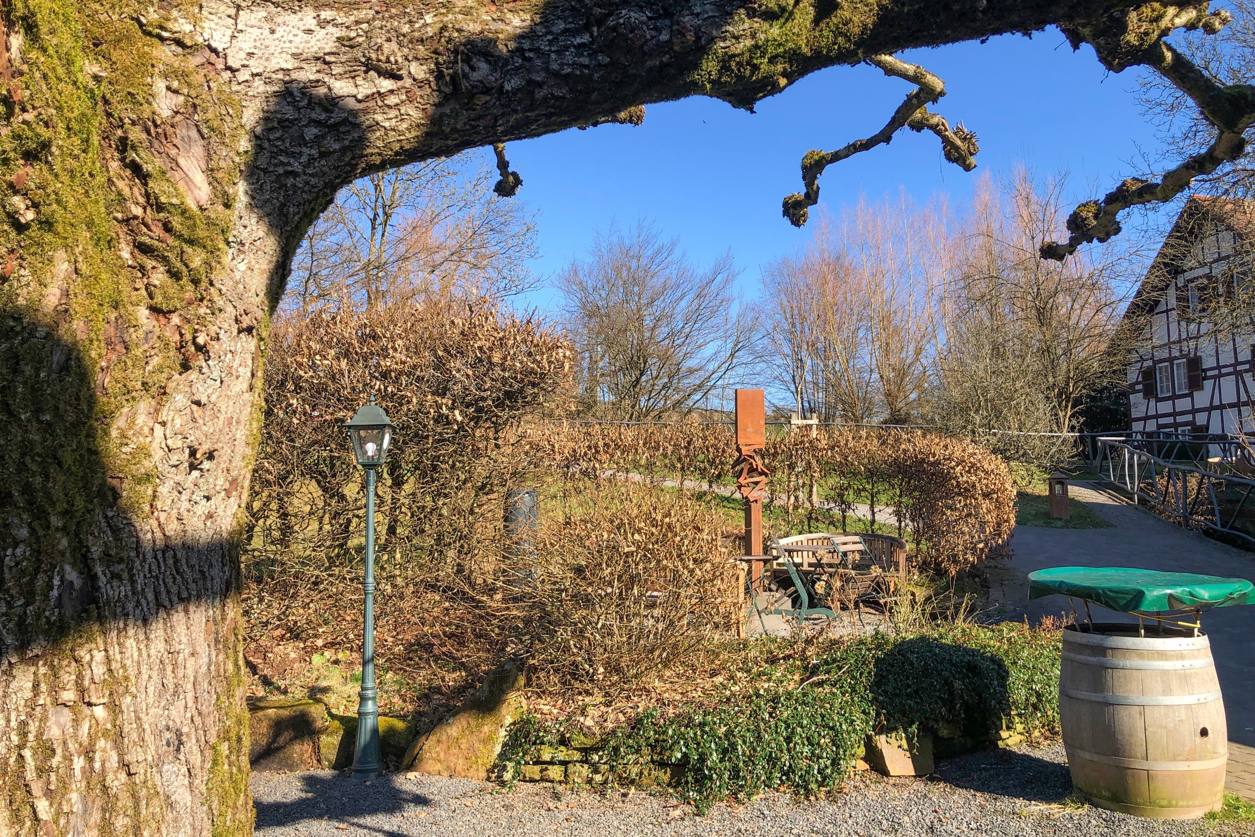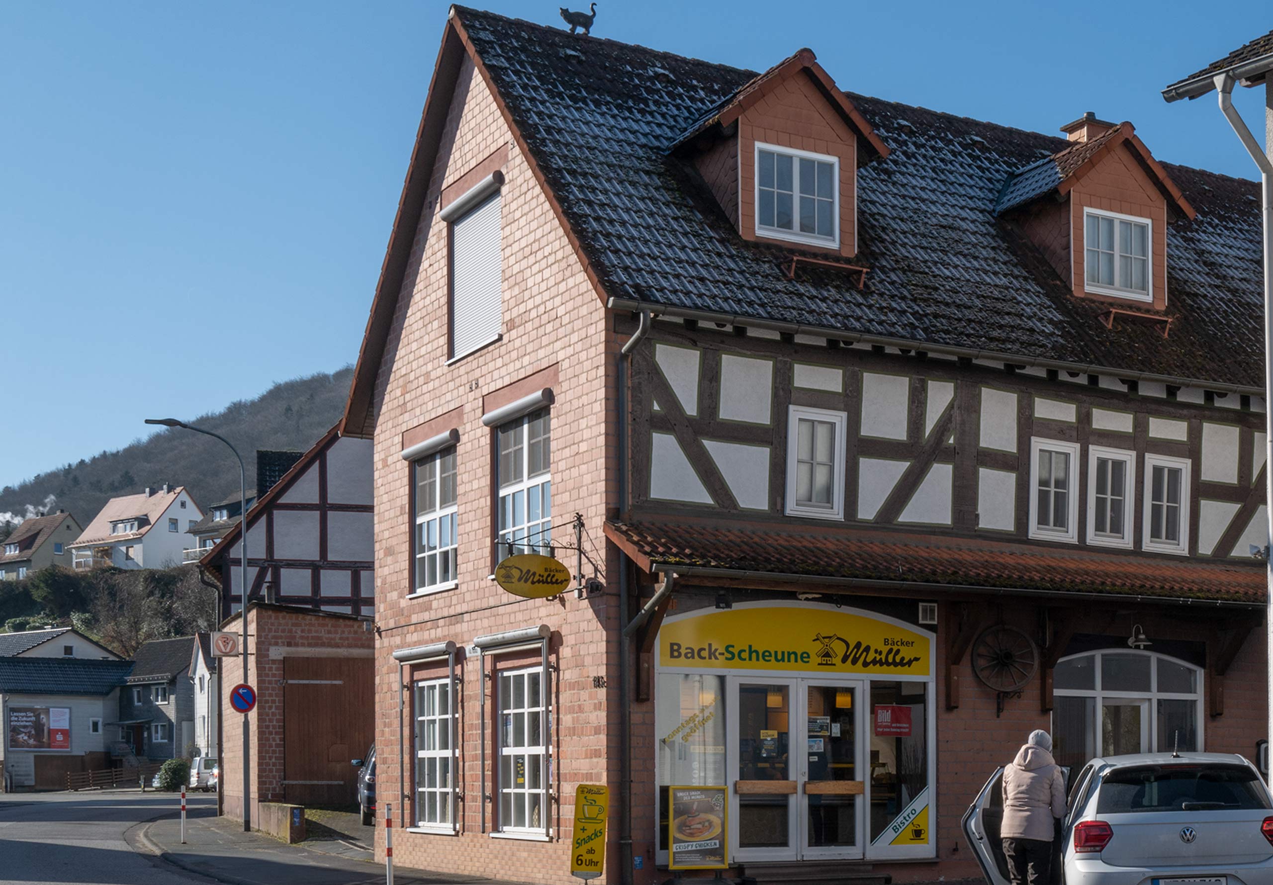 Zur Backscheune ist es ein Spaziergang. Sackgasse hoch, oben links bis zum Friedhof. Hier geradeaus den Berg runter (Fußweg), über den Zebrastreifen nach rechts – hinter dem Metzger ein paar Häuser weiter auf der rechten Seite ist die Backscheune. Wer Sonntags die leckeren Brötchen essen möchte, die oben UND unten in Mohn gewälzt wurden, sollte sie vorher telefonisch bestellen oder sich früh auf die Socken machen.